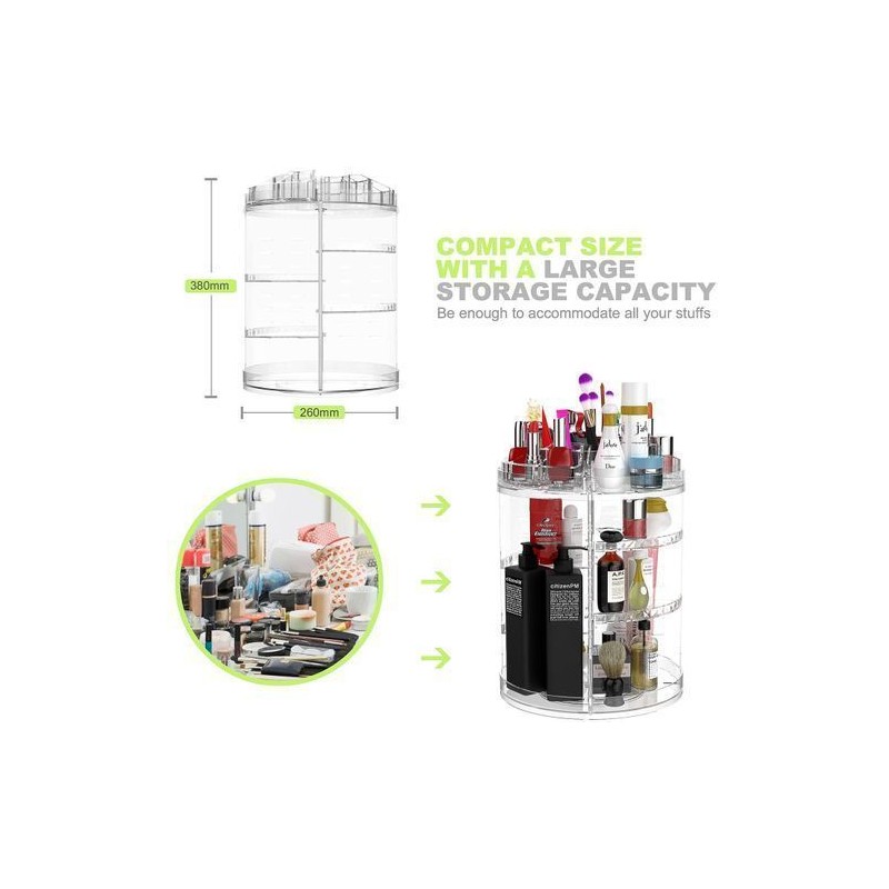 👑ROTATION À 360 DEGRÉS ET ÉCONOMIE D'ESPACE - La conception rotative humanisée avec une base stable permet à cet organisateur de maquillage de tourner en douceur et en silence, un accès facile à tous vos produits de soin de la peau et cosmétiques en quelques secondes. Tenez tous vos divers articles de beauté personnels dans cet organisateur de maquillage, économisez 70% d'espace dans la coiffeuse et économisez votre temps de maquillage de 50%, rendant votre espace de vie bien rangé.