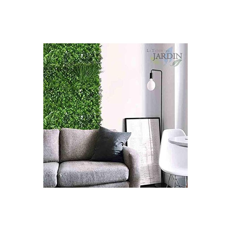 Opter pour des murs végétaux, c’est profiter d’un décor de verdure imitant parfaitement les plantes sans aucun entretien. Ces carrés de 1m x 1m peuvent être installés en intérieur, sur un balcon, une terrasse ou dans un jardin. Ils offrent une occultation de très haute densité et peuvent être clipsés entre eux.