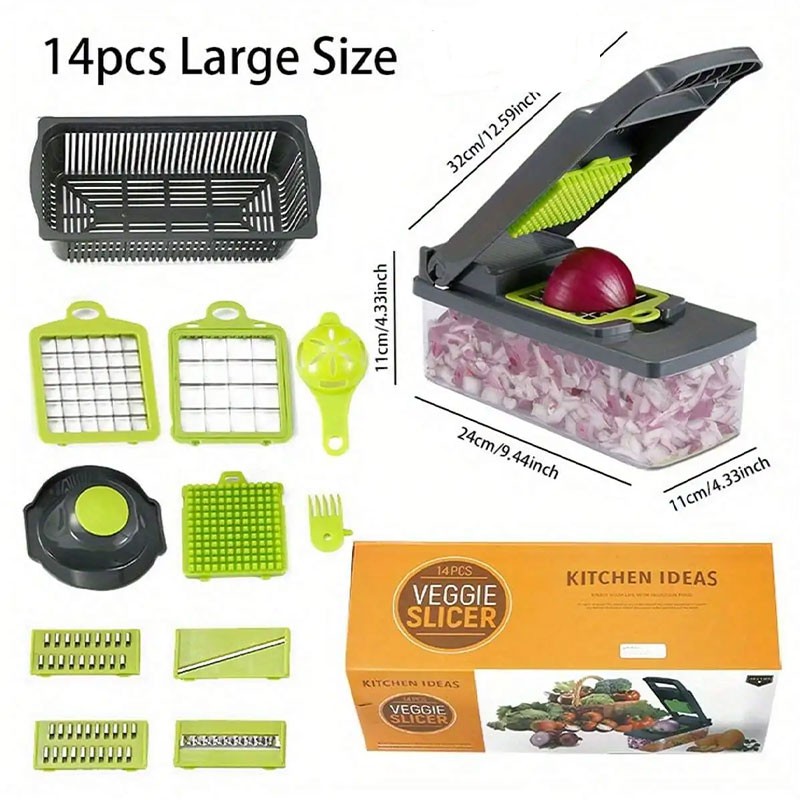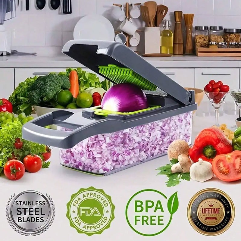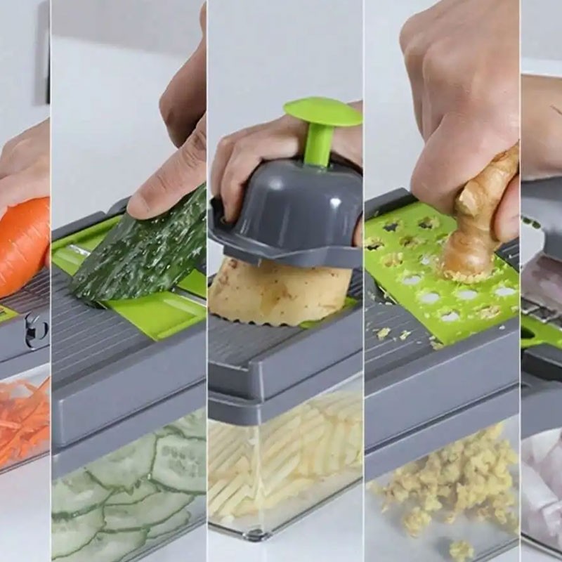 Le coupe-légumes multifonction 12-en-1 est l’outil indispensable pour une préparation rapide et efficace de vos fruits et légumes. Polyvalent et pratique, il permet de trancher, râper, émincer et zester facilement, tout en vous faisant gagner du temps en cuisine.
