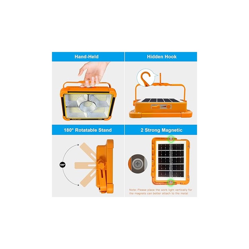 Profitez d’un éclairage performant partout, sans branchement électrique, grâce à ce projecteur solaire portable 100w. Idéal pour le camping, le jardin, les balades nocturnes ou toute activité en extérieur.