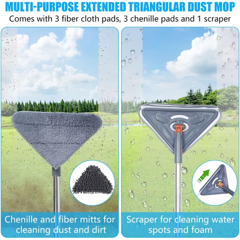 Kit de nettoyage multifonction : Écologique et réutilisable, ce balai à long manche est parfait pour nettoyer murs, plafonds, plinthes, portes, sols et garnitures de fenêtres. L’outil idéal pour un entretien facile et complet de votre maison.