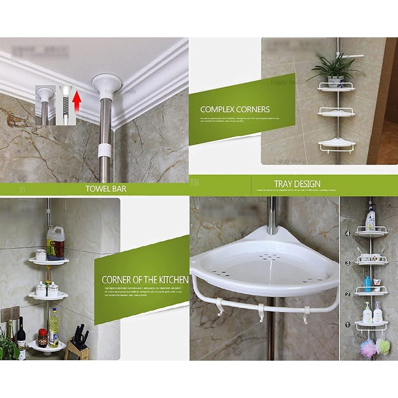 Sa conception triangulaire optimise parfaitement l’espace en exploitant les coins inutilisés de la salle de bain. Idéal pour ranger shampoing, gel douche, savon, rasoirs, éponges et autres accessoires.