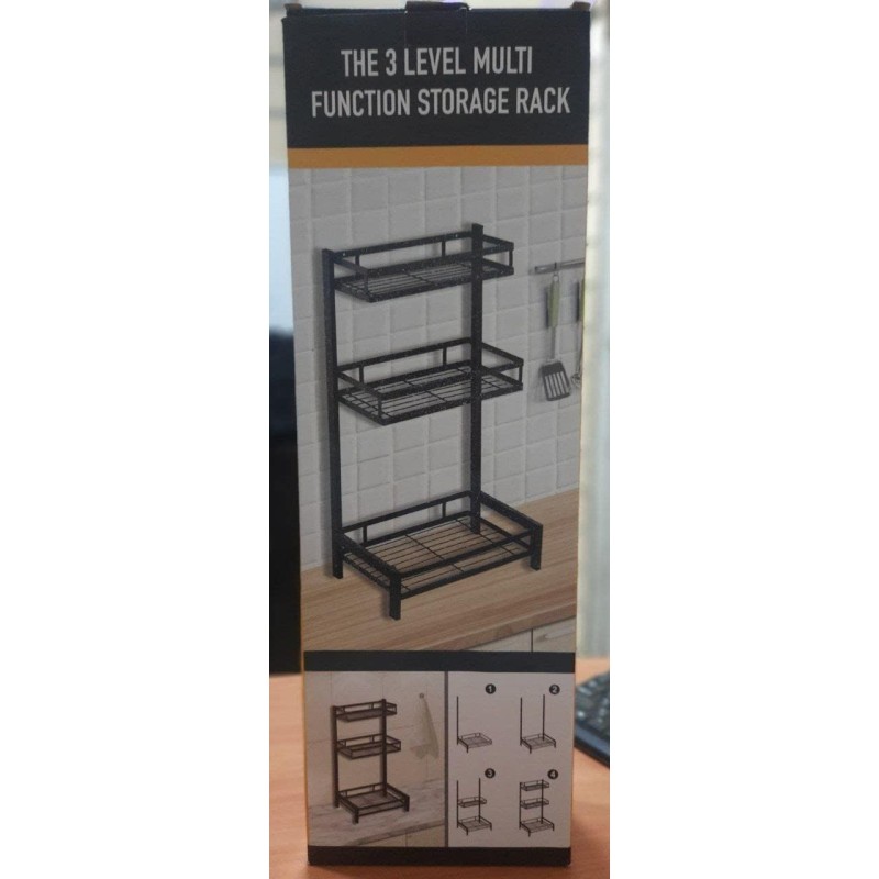 Le produit est une étagère de rangement multifonctionnelle à 3 niveaux. Elle est conçue pour l'organisation et peut être utilisée dans diverses pièces de la maison.