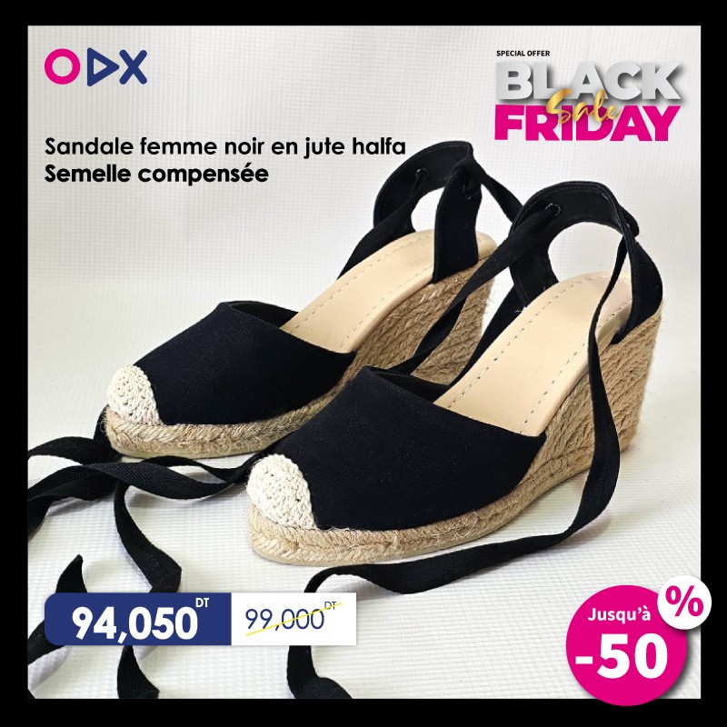 Ordex.tn met en vente de sandale compensé en jute avec rubans attachés à la cheville. Les chaussures en jute halfa pour femmes captivent par leur simplicité naturelle et leur élégance rustique. La texture unique du jute ou du halfa confère à ces sandales un charme authentique, parfait pour compléter une tenue décontractée ou estivale. Offrant à la fois confort et un look écologique. Avec sa plate-forme confortable et moderne, disponibles dans une palette de couleurs naturelles allant du beige doux au brun terreux, ces chaussures incarnent l'artisanat traditionnel tout en répondant aux exigences contemporaines de durabilité et de style.